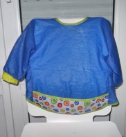 Je me disais que ça ne durerait pas…je me disais que ce n’était pas grave…mais ça ne marche pas, ça me crispe toujours autant de le voir balancer exprès les petits pois aux quatre coins de la cuisine…arggh Pour réussir à ne pas trop m’agacer, j’ai un joker : un bavoir à manches longues en plastique, pour Petit Baroudeur, pas pour moi (quoique? c’est pas une mauvaise idée en fait). Et ça, ça me sauve les repas avec Petit Baroudeur…Je sais qu’à la fin du repas, je retrouverai un Petit Baroudeur tout propre derrière son bavoir « témoin de repas »...et que je n’aurai que la cuisine à nettoyer... Alors, je voulais vous en parler…car j’en ai testé des bavoirs et il y a de tout…du bof et du parfait,